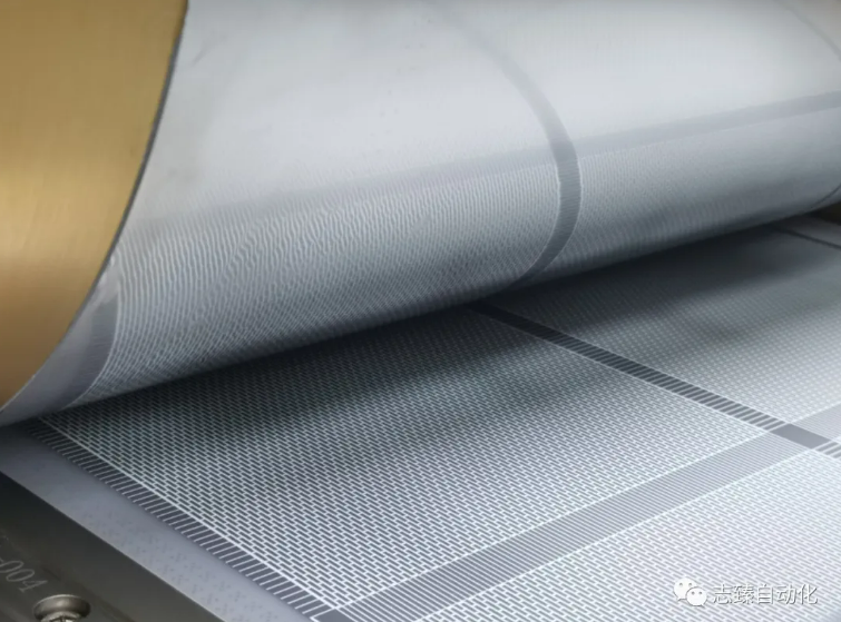 ? ? ? ?而輥軸式疊層則是線與面的展開貼合,同樣初中物理課一條線由2個點決定,在貼合過程中會形成兩條不規則曲線在平面上展開,通過特殊的結構設計可以將直線打斷成上萬個小段線,想象一下畫面上萬條曲線在平面上展開,對比平板的3點接觸壓合,輥軸就是無群個點接觸壓合,再加上貼手機膜的工藝,輥壓過程中將氣泡排出,輥軸式的疊層質量會大大好于平板式;介質膜的剝離采用無損傷滾輪剝離對比平板式的銳角撕裂剝離,在剝離的品質和穩定性上會有很大程度的改善,特別是超低厚度介質膜的剝離優勢尤為明顯;產品在疊合過程中始終是線性接觸,壓合力可以做到足夠大,對比平板式壓合數據單位面積內可以做到幾百噸甚至更大的力,疊層后的產品硬度對比平板式加工會很大程度的提高;輥疊因線性壓合不需要保壓的過程,每層的ct可以做到2秒以內速度,對比平板式在效率上有絕對優勢。
