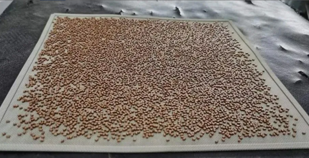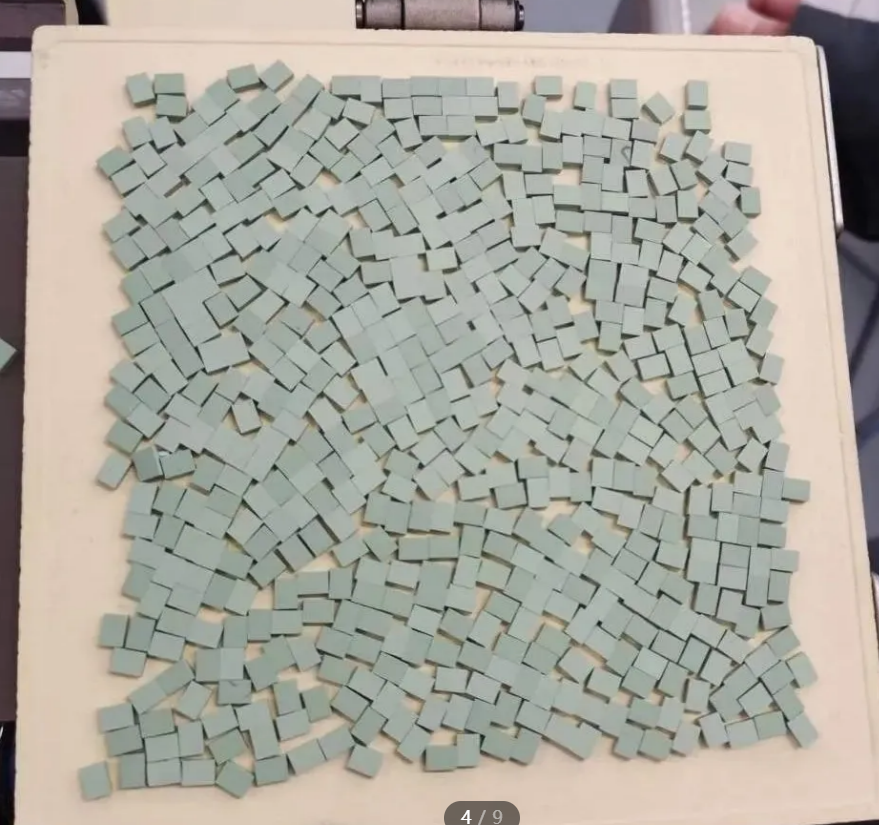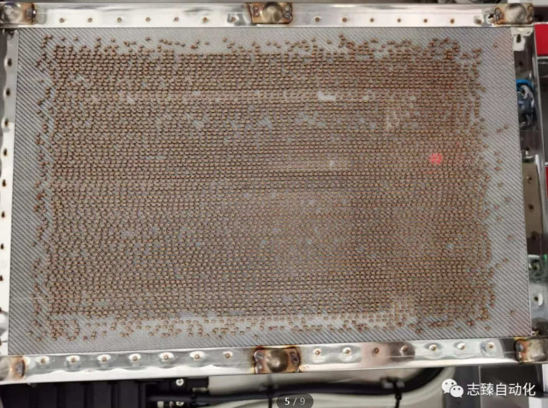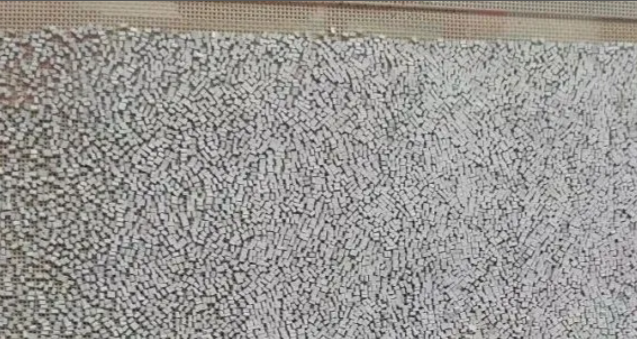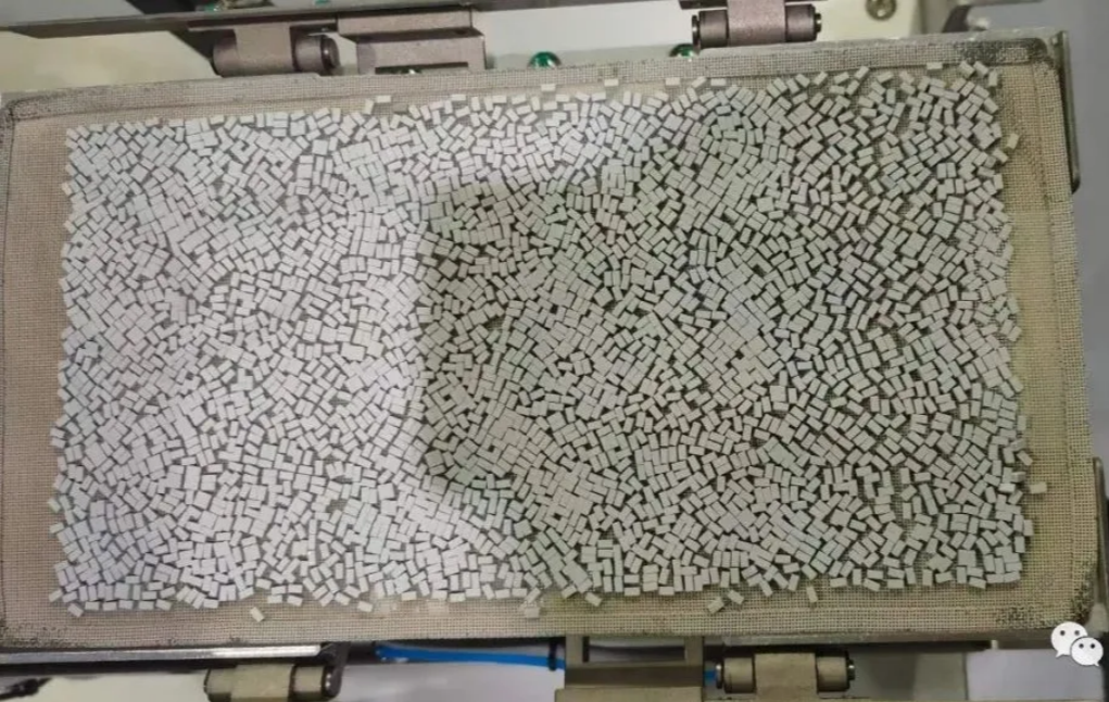 燒端爐為網帶式隧道爐,作業一般為前側投入后側回收,一條爐子通常需要兩個人進行作業,因為燒結時間的要求爐子行走速度很慢,往往人工在等待爐子人員使用上極大的浪費,人工布料效果不穩定,重疊布料或密接布料都會造成粘連率增加的問題,天津志臻自動布料收料設備在做到無人值守全自動作業的同時,實現了矩陣布料、單層平鋪布料、雙層疊層投料的效果,并在收料設備配置自動精密篩選功能,避免銅端長時間與空氣接觸有氧化的問題,以下是布料效果圖片: